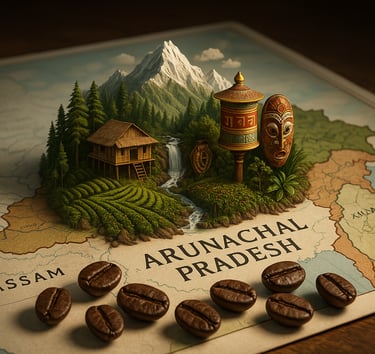 In the far Northeast, Arunachal Pradesh is better known for its vast forests and tribal cultures than for coffee. Yet, here in the foothills and valleys, wild Robusta trees grow under the forest canopy, nurtured by rainfall and mountain soil. Unlike estate-grown coffee, these Robustas are plucked by hand from the forest itself