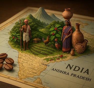 Tucked into the Eastern Ghats of Andhra Pradesh, the Araku Valley is India’s best-known specialty coffee origin. Over the last two decades, Araku has become synonymous with organic, shade-grown, high-altitude Arabicas that are celebrated worldwide for their clarity and brightness. With elevations around 1000–1100m, fertile red soils, and biodiverse farms tended by tribal communities, Araku coffees offer a rare combination of clean profiles, floral aromatics, and citrus-sweet finishes.
